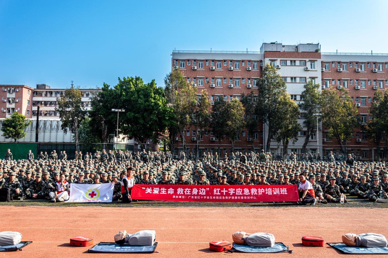 普及新生急救知识,强化安全意识。1月13日,学校结合新生军训在黄埔、琶洲两校区开展应急救护宣讲,近4000名新生参与。讲师系统讲解急救流程与操作要点,并组织模拟实操,帮助学生掌握基本技能,深化“时间就是生命”的救援观念,增强社会责任心。